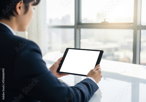 Person Using Blank Tablet Screen Mockup Office Work Presentation