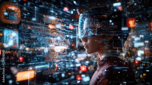 Person Wearing Vr Headset Experiencing Digital Futuristic Interface