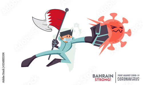 Person with biohazard suit holding national flag fighting coronavirus pandemic or coronavirus outbreak 2019 COVID-19. National map on background. Scalable and editable vector illustration.