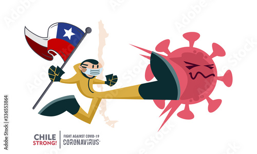 Person with biohazard suit holding national flag fighting coronavirus pandemic or coronavirus outbreake 2019 COVID-19. National map on background. Scalable and editable vector illustration.