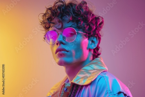 Person with colorful backlighting in studio
