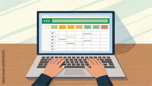 person working laptop financial spreadsheets concept. Person typing on a laptop with a spreadsheet on the screen.