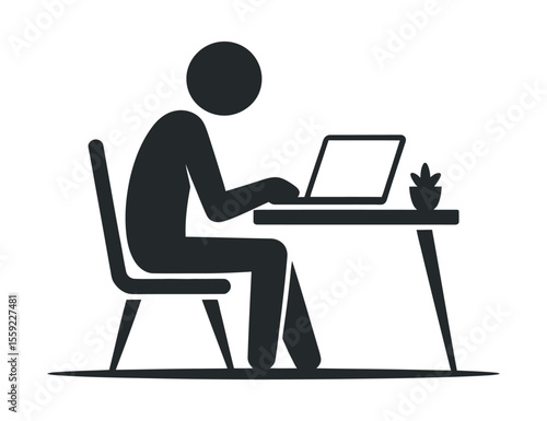 Person working on a laptop at a desk with a plant