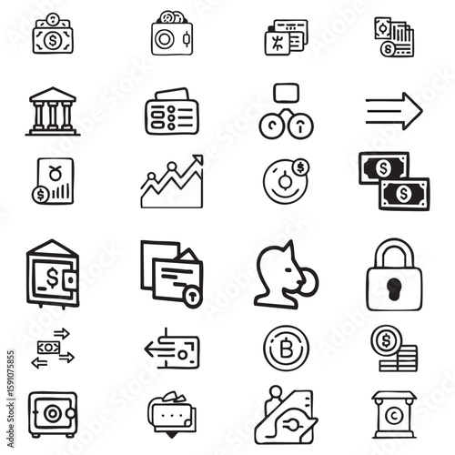 Personal Finance line editable icon set.stroke, editable, set, icon, collection, bank, fina savings, expense, income, tax, loan, statement, financial management, mortgage and more. Vector illustration