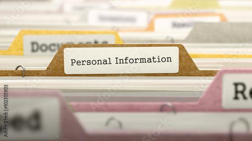 Personal Information - Folder Register Name in Directory. Colored, Blurred Image. Closeup View. 3d Render.