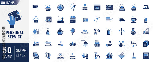 Personal service flat icon set. Containing Clean, home, room, salon, spa and more. Vector illustration