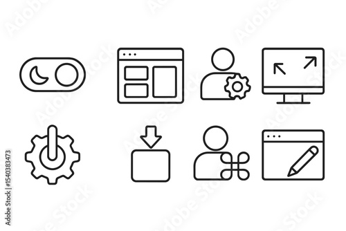 Personalization Tool Icons. Line style icons of personalization tools: theme switch, layout options, profile preferences, display
