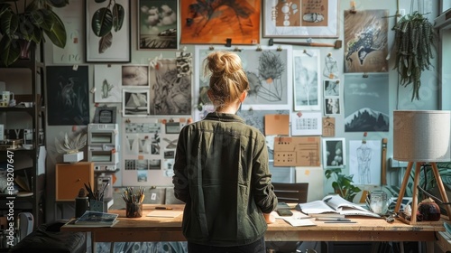 Personalized client designs and concepts being created in a cozy artful boutique studio workspace filled with and creativity