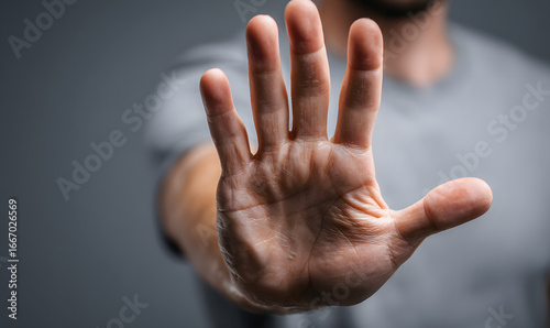 person's hand showing palm gestures stop concepts ofviolence, warning, refuse,and defense. the hand signof men a stop, caution