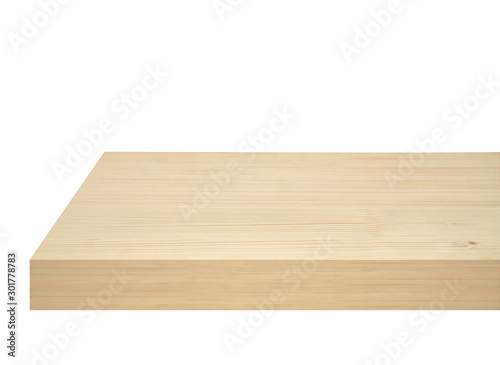 Perspective view of wood or wooden table top isolated on white background including clipping path