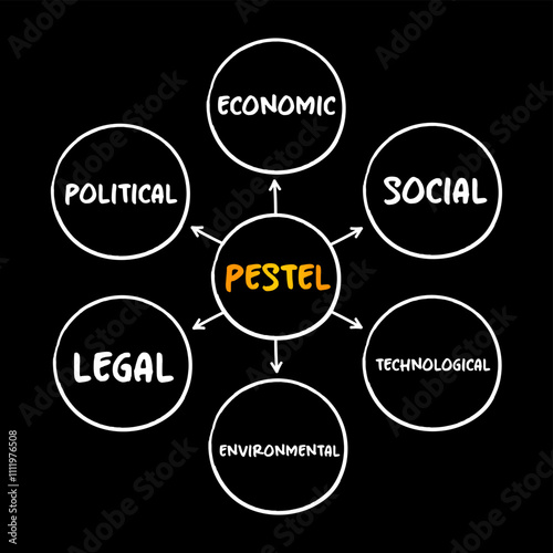 PESTEL acronym - framework of macro-environmental factors used in the environmental scanning component of strategic management, mind map concept background