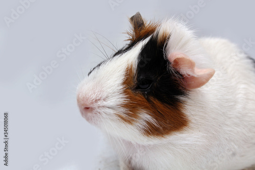 pet guinea pig looks at a white background