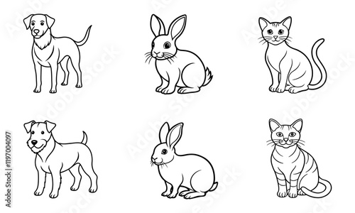 Pet Illustrations Collection in Line Style. Dogs, Rabbits and Cats