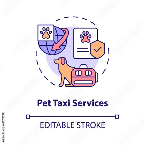 Pet taxi services concept icon. Transport animals. Starting delivery business abstract idea thin line illustration. Isolated outline drawing. Editable stroke. Roboto-Medium, Myriad Pro-Bold fonts used