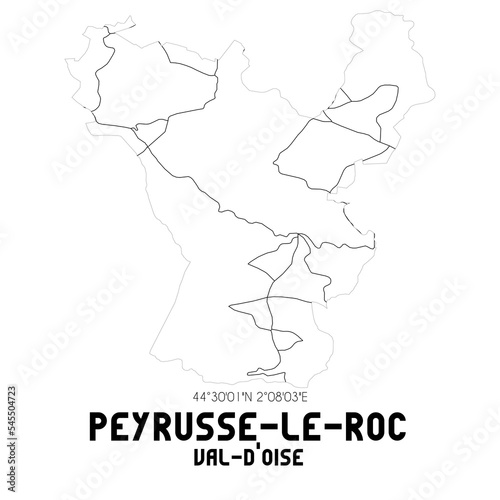 PEYRUSSE-LE-ROC Val-d'Oise. Minimalistic street map with black and white lines.