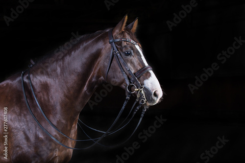 Pferd im Fotostudio Warmblut mit interessanter Blesse