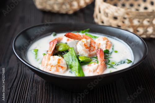 Phak Lieng Tom Kati Goong , Melindjo leaves in coconut milk soup with prawn