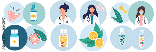 Pharmacy icons representing teledermatology services skin health screenings dermatological care programs showcasing the role of pharmacies in promoting skin health and dermatologic wellness