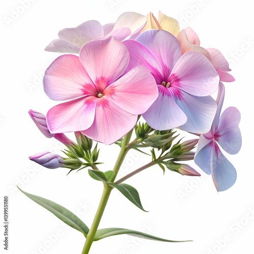 Phlox 3D rendered flower delicately isolated on a white background with vibrant petals and intricate textures