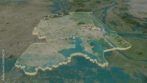 Phnom Penh, Cambodia - extruded with capital. Satellite