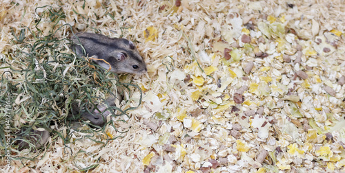 Phodopus sungorus. Jungar hamster in a cage