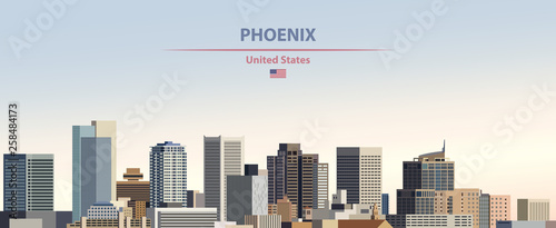 Phoenix city skyline vector illustration on colorful gradient beautiful day sky background with flag of United States