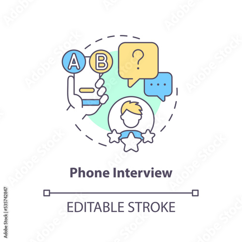 Phone interview concept icon. Call research. Remote usability testing. User feedbacks abstract idea thin line illustration. Isolated outline drawing. Editable stroke. Arial, Myriad Pro-Bold fonts used