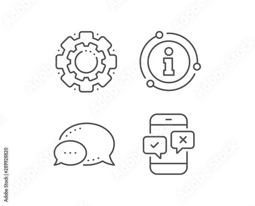 Phone survey line icon. Chat bubble, info sign elements. Select answer sign. Business interview symbol. Linear phone survey outline icon. Information bubble. Vector