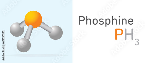 Phosphine (PH3) gas molecule.Stick model. Structural Chemical Formula. Chemistry Education