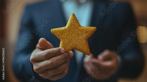 Photo - Businessman Holding Golden Star, Customer Experience Concept