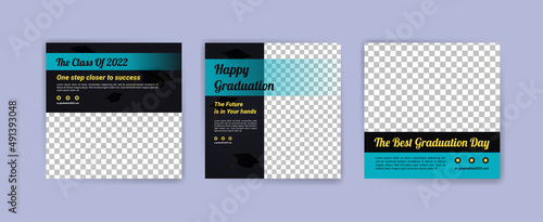Photo booth props frame for graduation party. Selfie concept. Frame with hats for graduates. Congratulate graduate quotes.