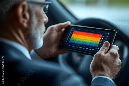 Photo Businessman Analyzing Data on Digital Tablet in Car
