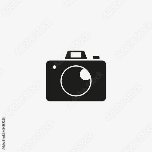 Photo camera flat of black color. Vector photography icon on white background