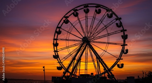 Photo Ferris Wheel Silhouette at Vibrant Sunset