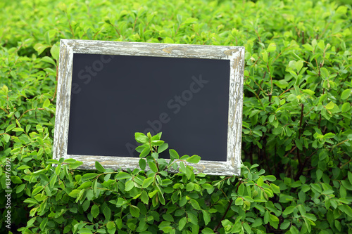 Photo frame over green bush background