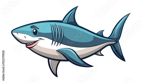Photo of a cheerful cartoon great white shark, isolated on white background