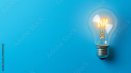 Photo of a light bulb on a blue background, symbolizing ideas and inspiration