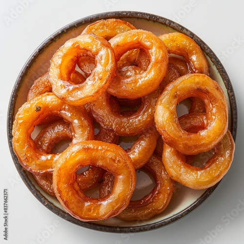 Photo of a onion rings plate with white background