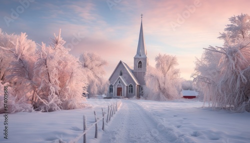 Photo of a Serene Winter Wonderland: A Church Amidst a Snow-Covered Landscape