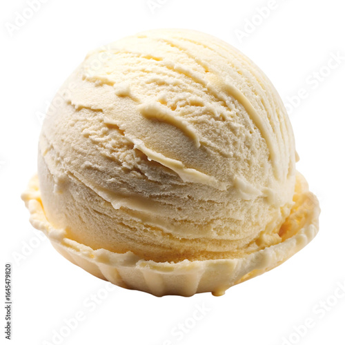 Photo of a single scoop of creamy vanilla ice cream isolated on a transparent background