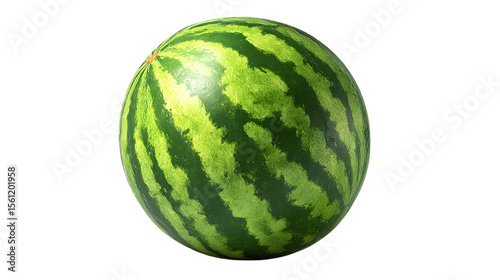 Photo of a whole, ripe watermelon with dark green stripes, isolated on transparent background, ready to be sliced and enjoyed on a hot summer day