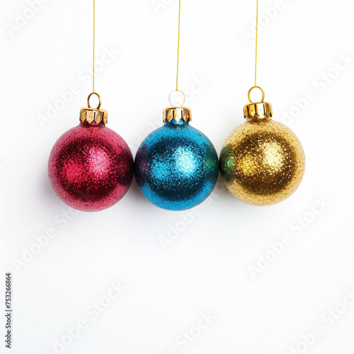 photo of Christmas tree decorations on a white background сreated with Generative Ai