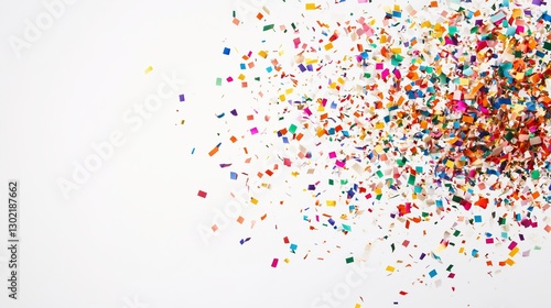 Photo of colorful confetti exploding, isolated on a white background, copy space