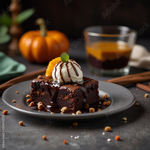 photo of delicious plate of vanilla ice cream rolls with a brawnie