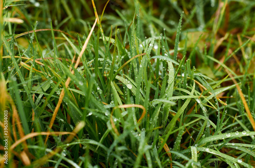 Photo of dew on green grass