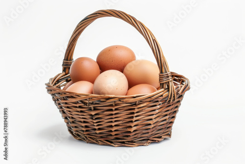 photo of eggs in basket isolated on white background