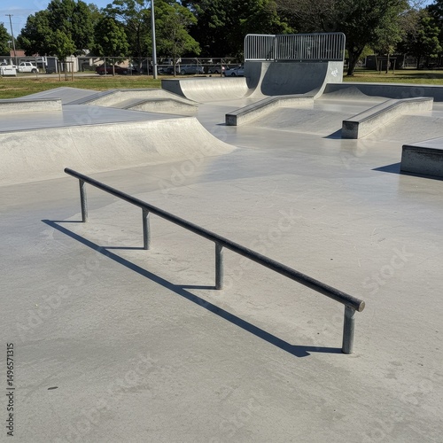 Photo of Empty Skatepark Grind Rail In Sunlight