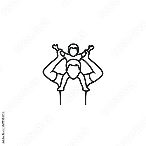Photo of father carrying his child on his shoulders, isolated on white