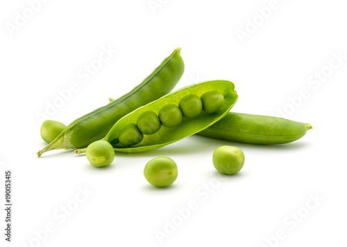 Photo of green peas isolated on white background