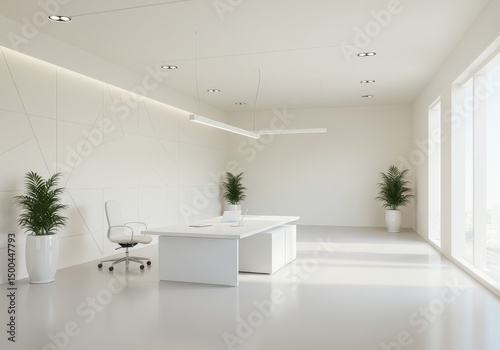 Photo Of Modern Office Interior White Room With Clean Desk and Plants
